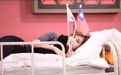 还有在参加某个节目时,让介绍自己国家的旗帜,她从自己房间里拿出来中华民国旗帜。