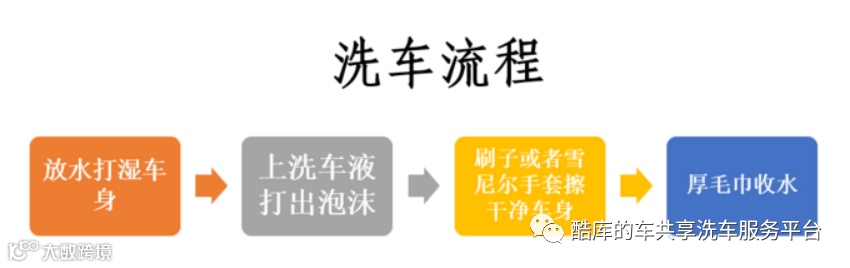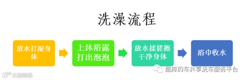 汽车的外部清洗就像我们洗澡一样简单,流程一般是放水先把自己打湿,然后上沐浴露,再打出泡沫,然后再冲干净,最后再浴巾收水,如下图:
