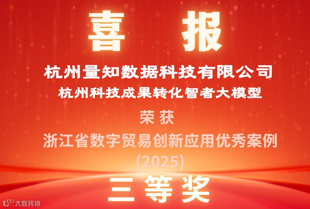 近日,2025年浙江省数字贸易创新应用优秀案例在第四届全球数字贸易博览会发布,量知科技凭借“杭州科技成果转化智者大模型”案例荣获浙江省数字贸易创新应用优秀案例三等奖。