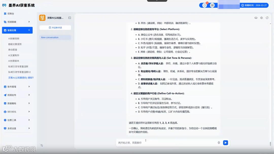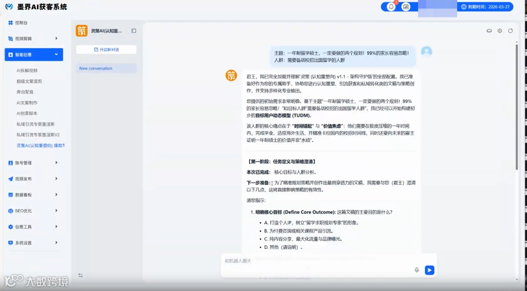 紧接着,AI会像一位经验丰富的策略师一样,向你提出一系列灵魂拷问,帮你理清思路,明确方向: