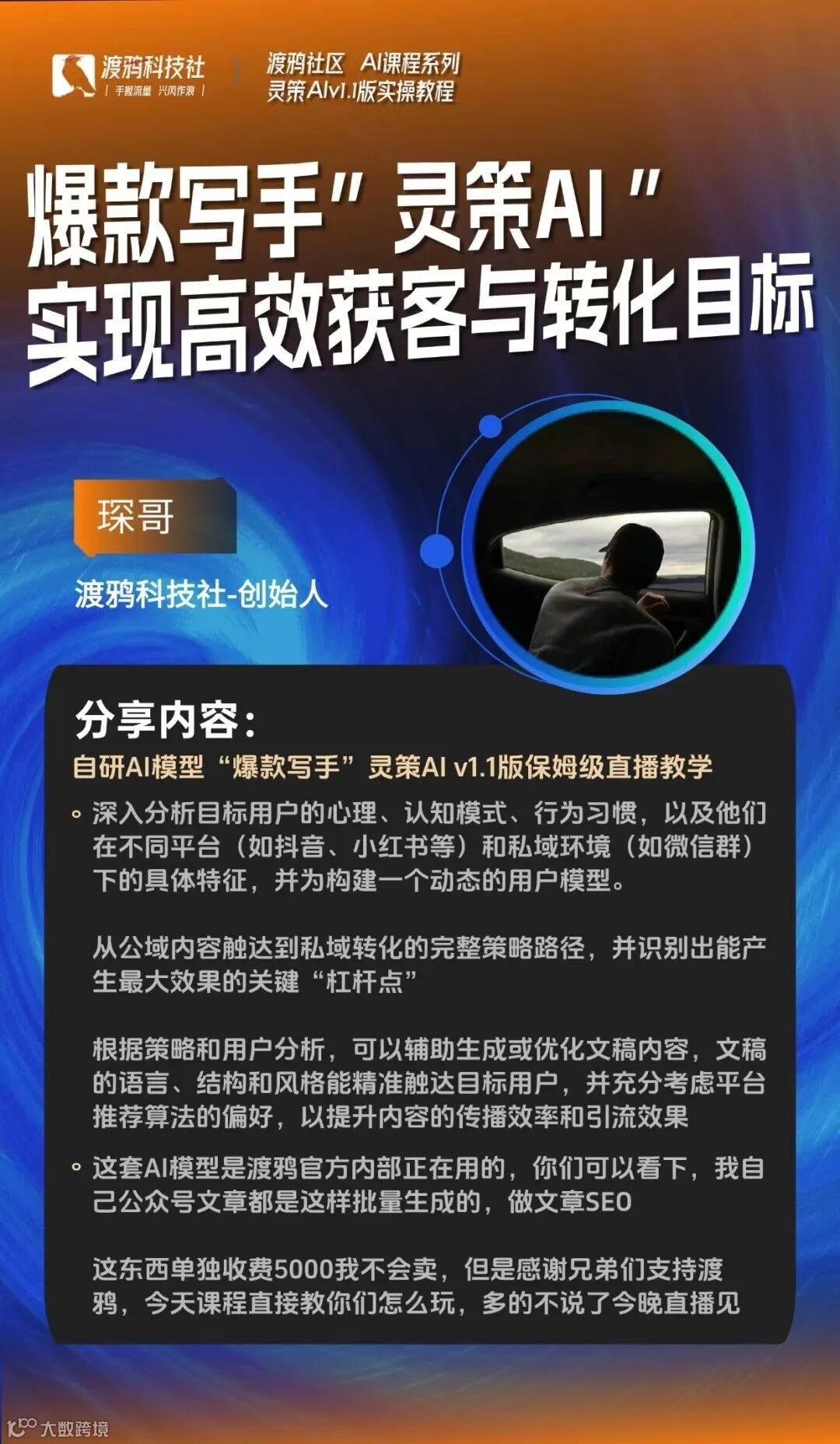 如果你渴望彻底解决流量焦虑,系统学习AI引流、内容创作、私域转化全套打法,渡鸦科技社的大门永远为你敞开!