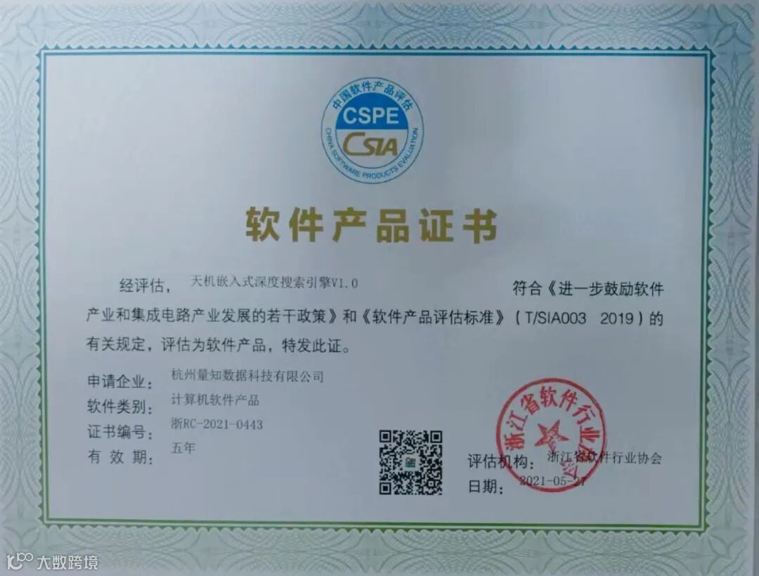 量知科技认定为浙江省软件企业、浙江省软件产品称号