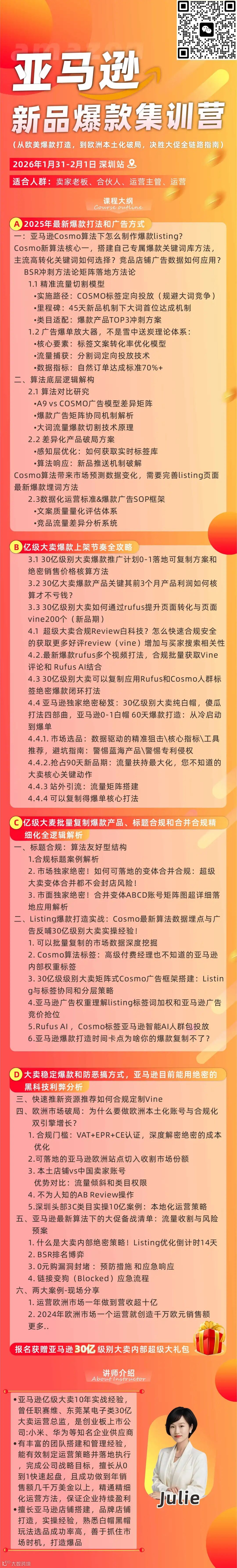 【1月16日强势开营|亚马逊爆款孵化营】