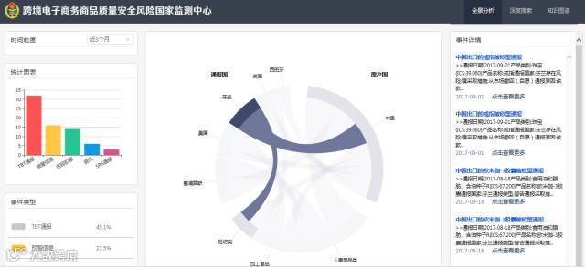 该监测平台主要通过对互联网跨境电商平台、风险预警日报、总局外网、总局官网执法司等网站平台的风险信息进行监测。依据“主题-事件-产品”构建知识图谱,根据风险信息中的商品名称及品牌提示,对易出现风险产品或可能出现的产品进行抽检,查看源头问题并快速处理商品的问题,从而达到对进口产品进行风险监控的事件预警的效果。