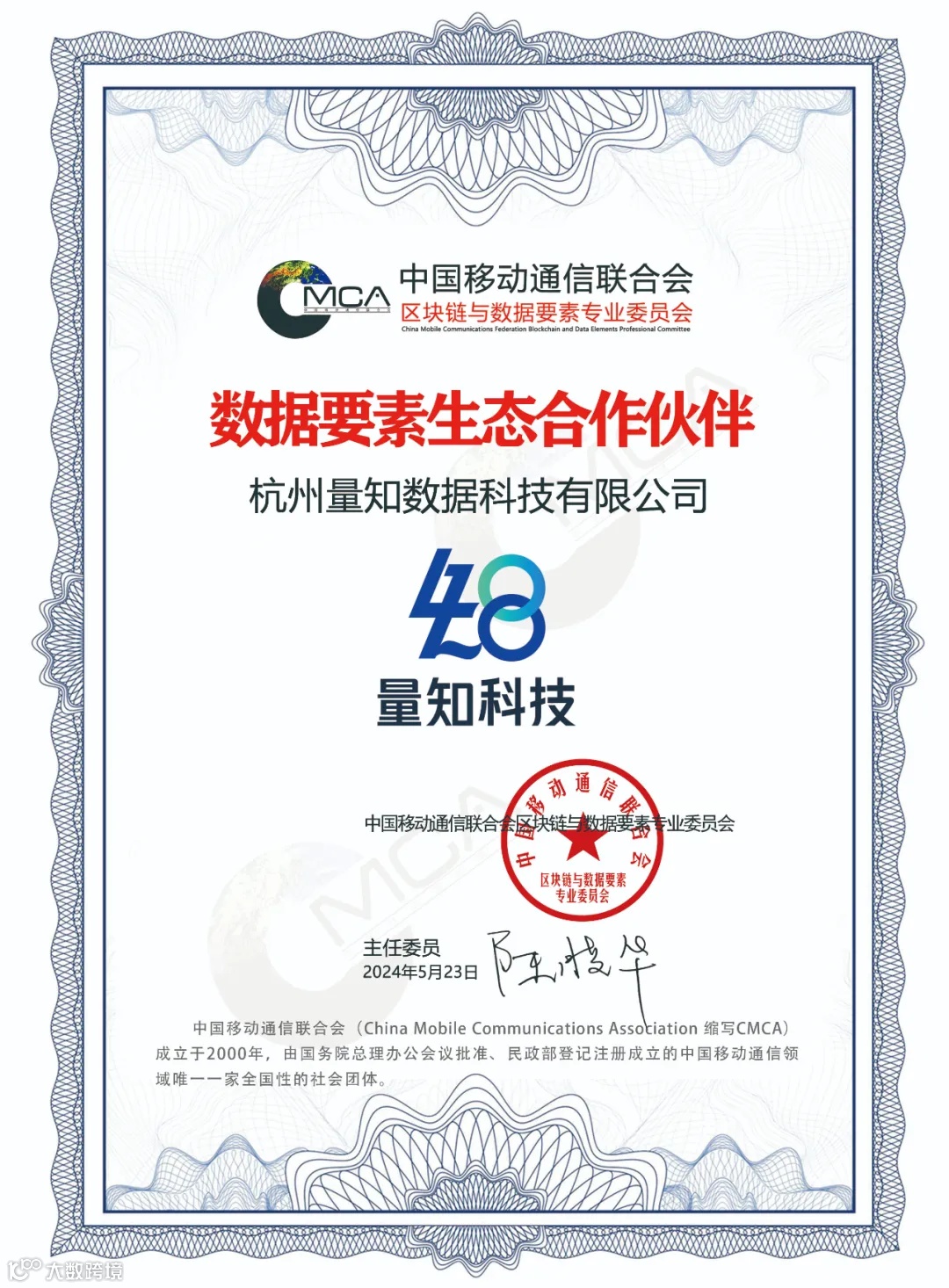 5月23日,杭州量知数据科技有限公司成功获批中国移动通信联合会区块链与数据要素专业委员会的“数据要素生态合作伙伴”。这一重要成就标志着双方在数据要素领域的深度合作迈出了坚实的步伐,共同开启数据要素生态合作新篇章。