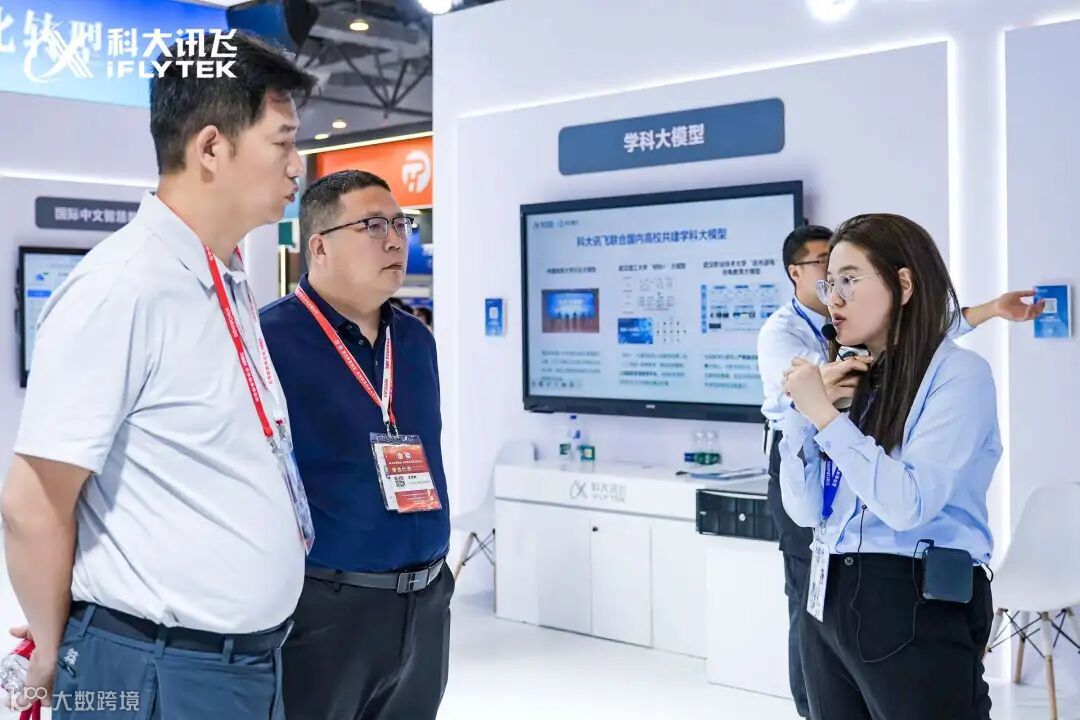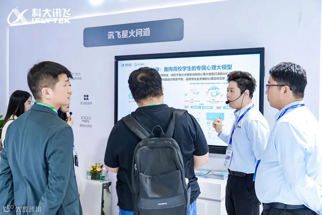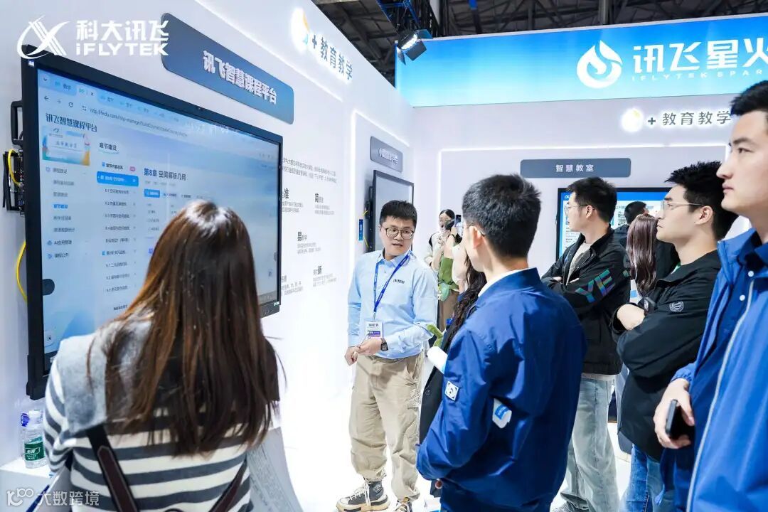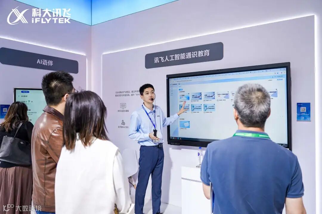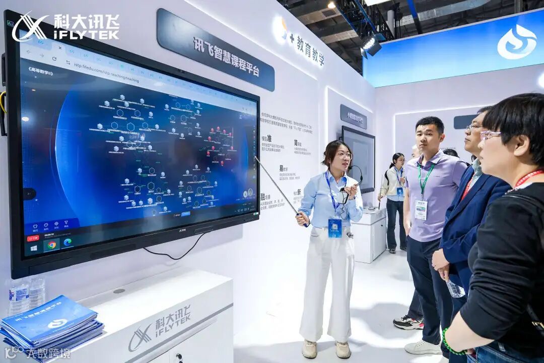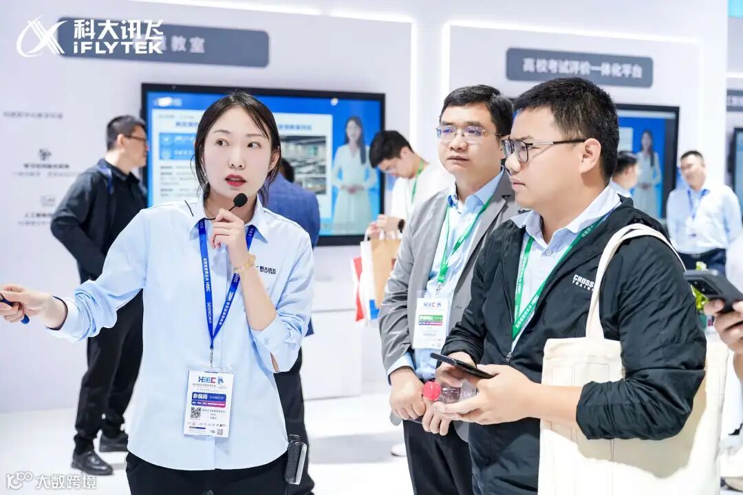 展会现场,科大讯飞重磅发布了学科大模型、新双高、智慧考试三大解决方案,吸引众多参展嘉宾驻足倾听。