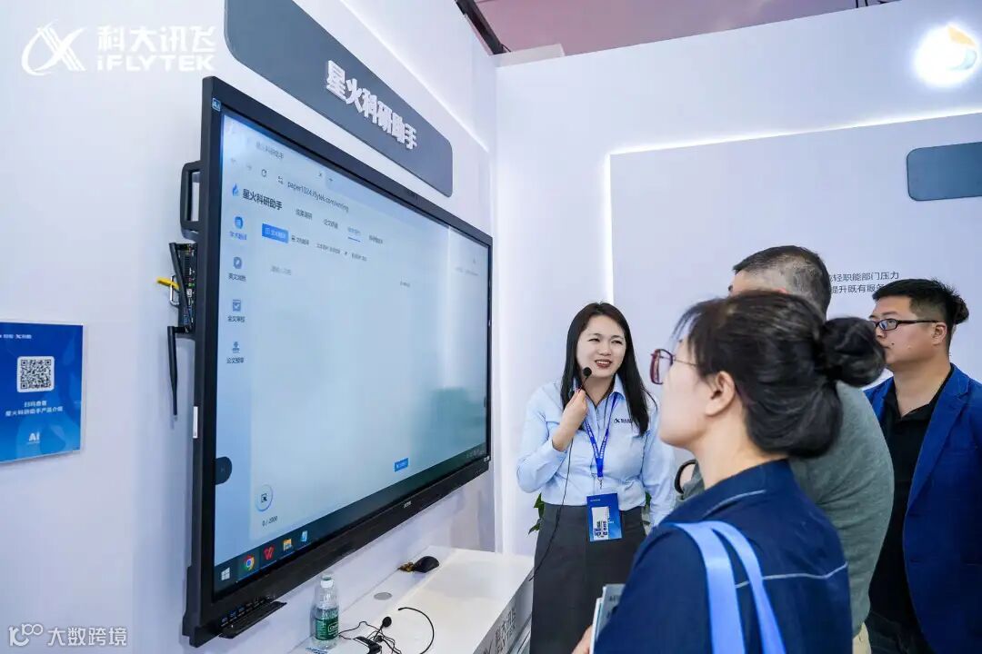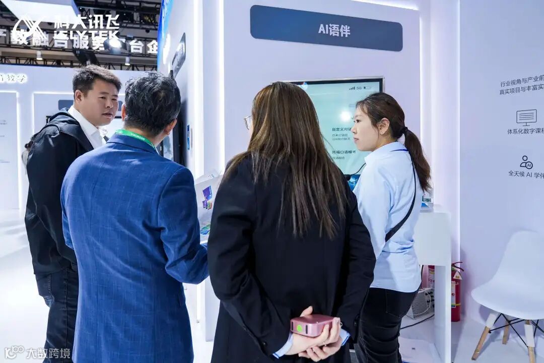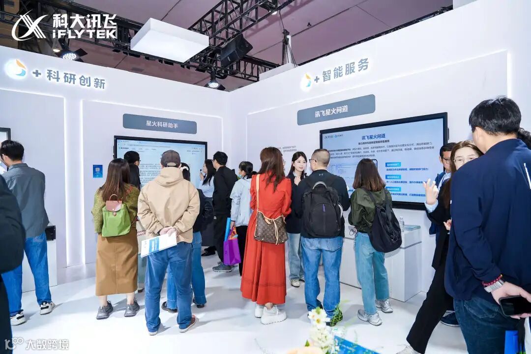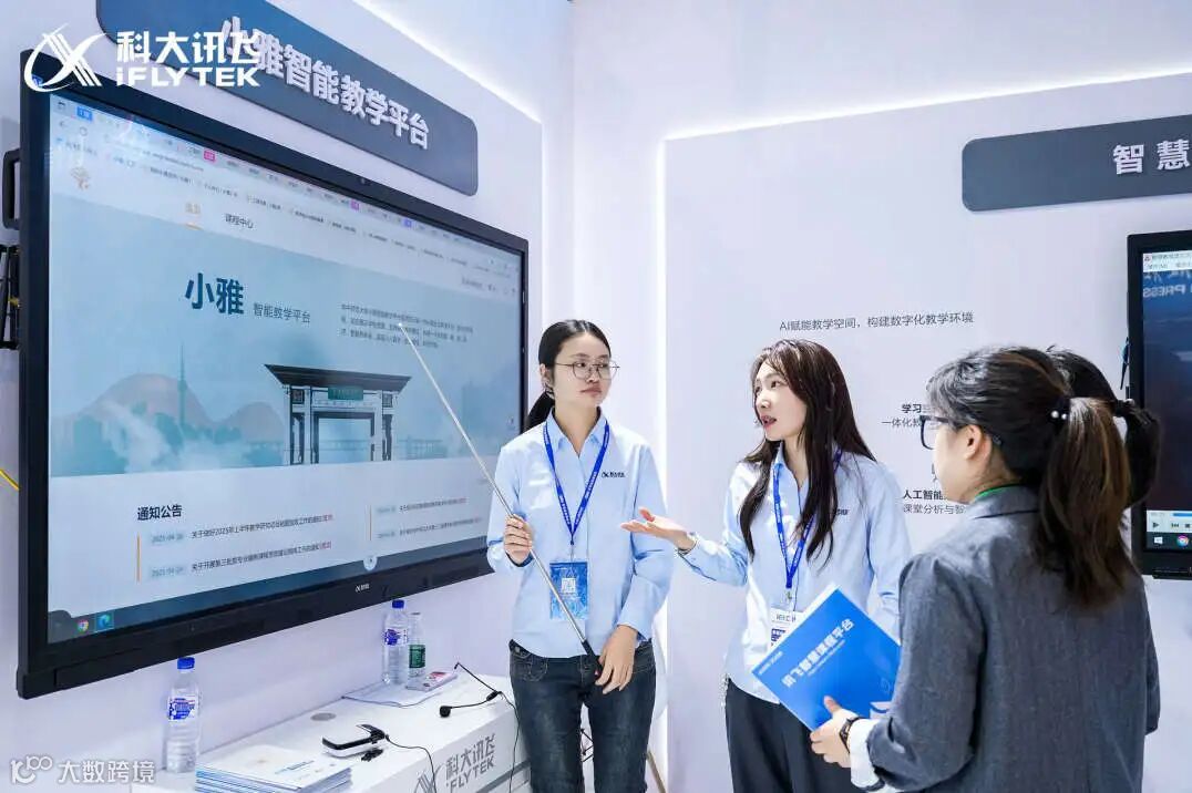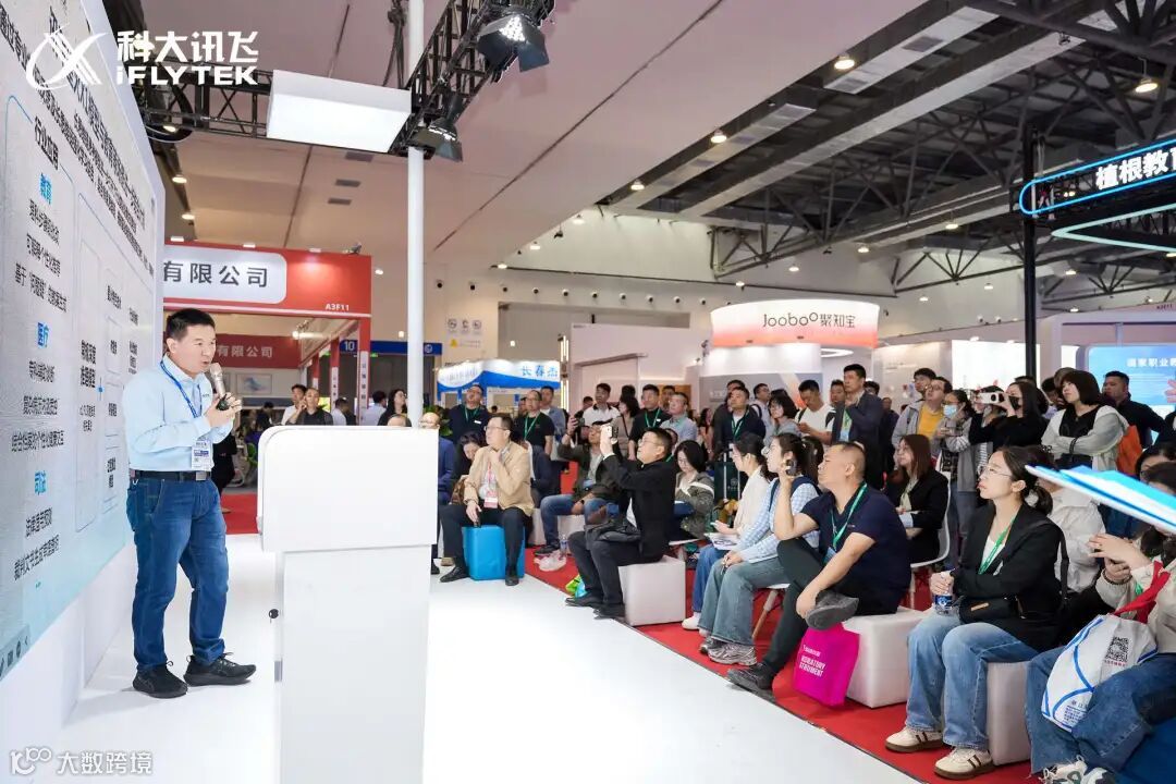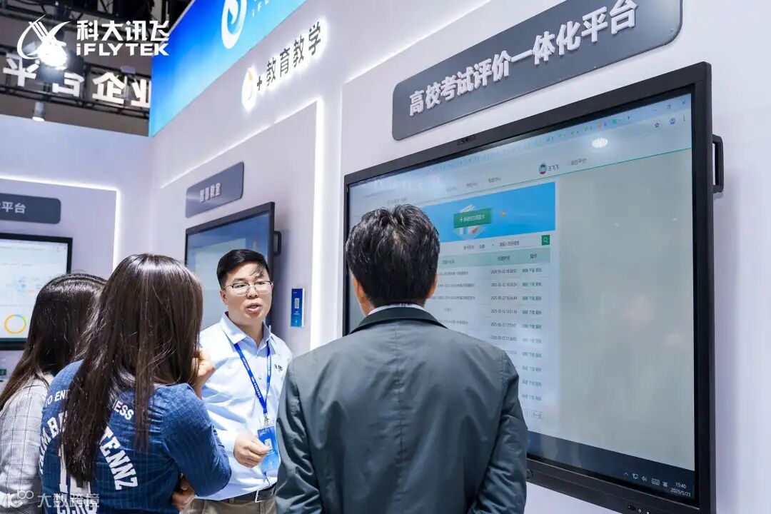 展会现场,科大讯飞重磅发布了学科大模型、新双高、智慧考试三大解决方案,吸引众多参展嘉宾驻足倾听。