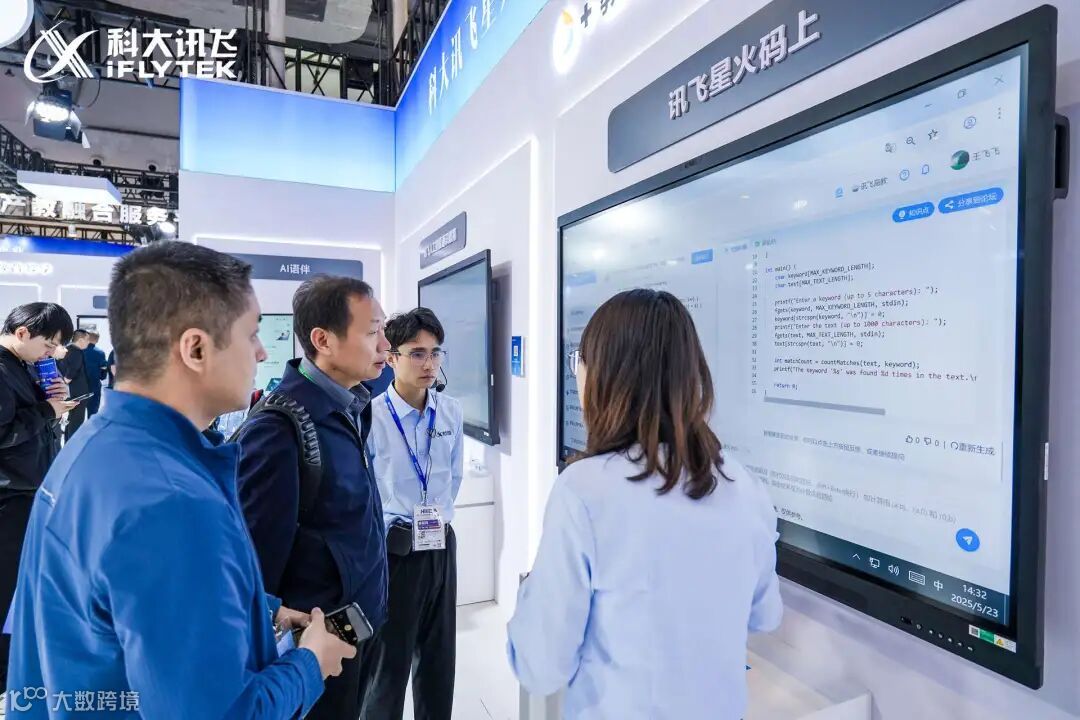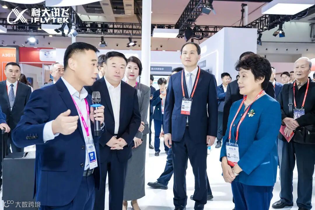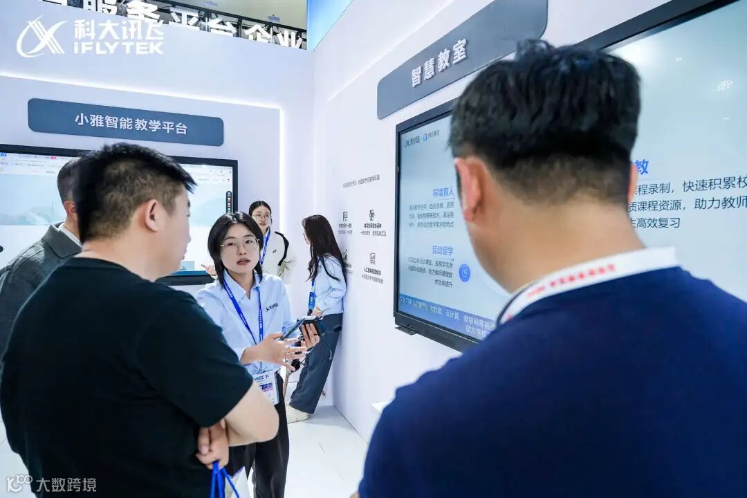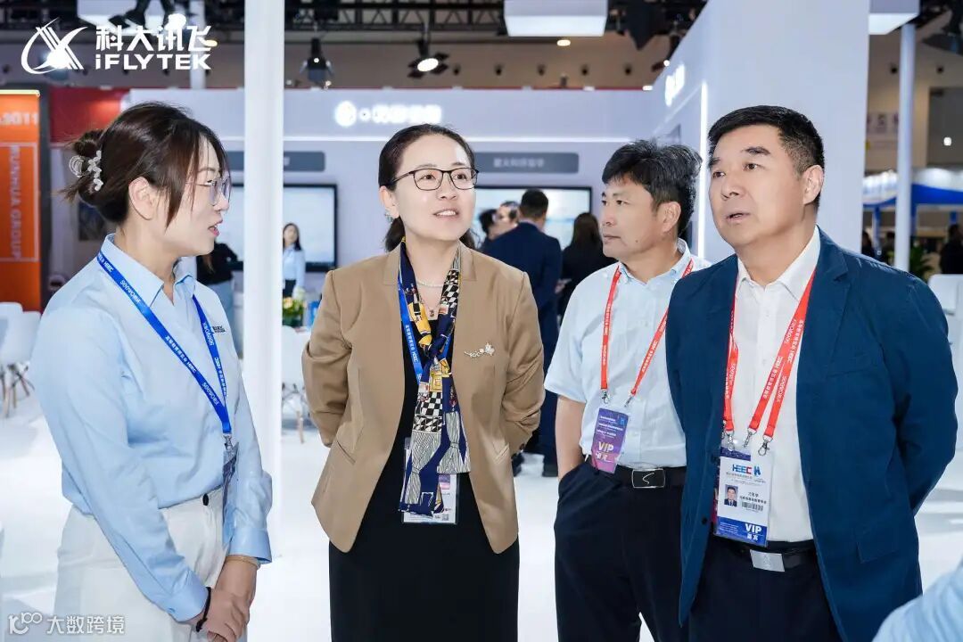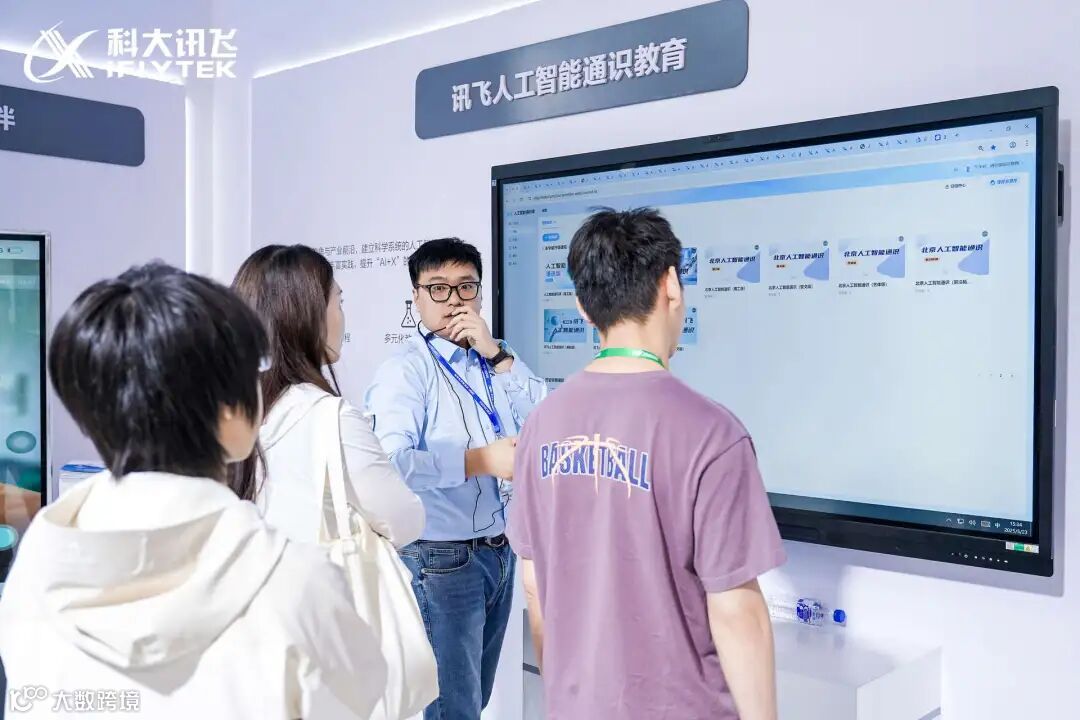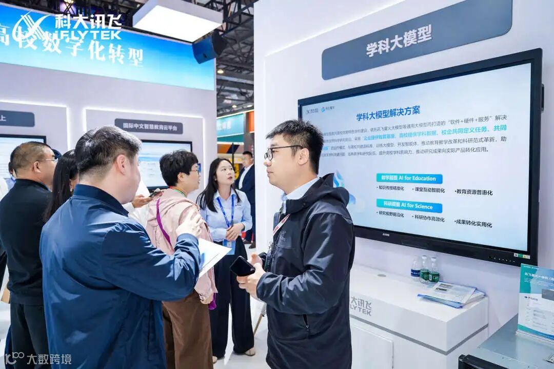 展会现场,科大讯飞重磅发布了学科大模型、新双高、智慧考试三大解决方案,吸引众多参展嘉宾驻足倾听。