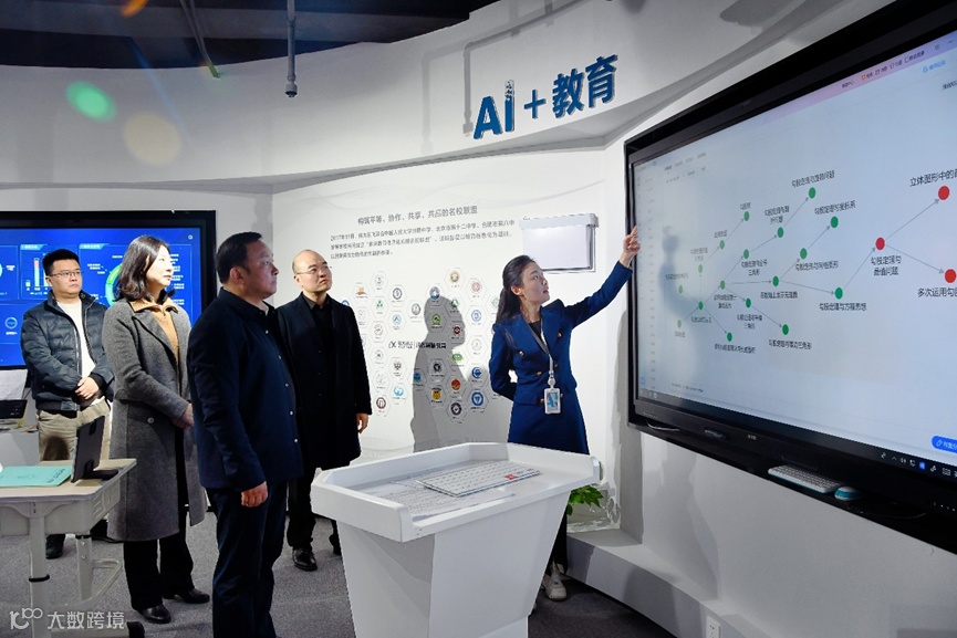 在智慧教育展区,涂晓晖一行重点观摩了智能批改、因材施教解决方案等智慧教育应用及服务,体验了星火教师助手、数智作业等在教育教学中的实际应用,感受人工智能应用在变革教学模式、促进教育减负增效等方面的影响。