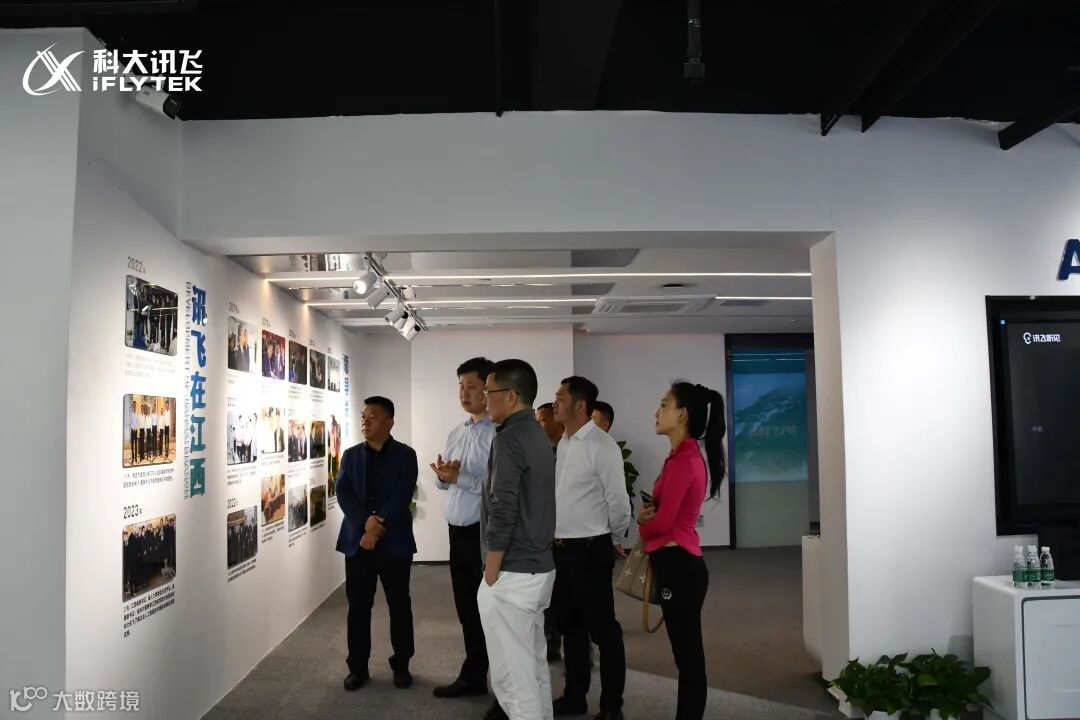 在参观人工智能展厅过程中,演示人员向考察团一行介绍了科大讯飞的发展历程,全面介绍了科大讯飞最新人工智能技术,以及在消费者、工业、教育、医疗等行业的落地应用,并了解南昌产业加速中心发展情况。