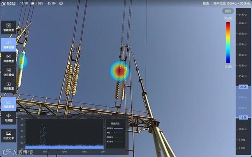 讯飞声学成像仪利用高精度麦克风阵列及超声波声源定位技术,通过非接触、远距离、大范围速扫,以图像直观展示极其细微的局部放电、气体泄漏、设备异响点的具体位置。产品已在安徽、福建、云南、内蒙古、浙江等多地变电站准确发现局部放电、设备异响等问题,相比人工检测,异常检测效率和质量大幅提高。
