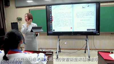随着社团活动的开展,也需要更多更优质的教学资源。阳春小学一直保持开放的心态,引入了很多信息化设备,探索更先进的教学方式。比如在科大讯飞的智慧课堂里,有着丰富的阅读与朗诵资源,在上语文课的过程中,老师点击课本上的任意一段话,就能让全班同学听到名家的诵读。