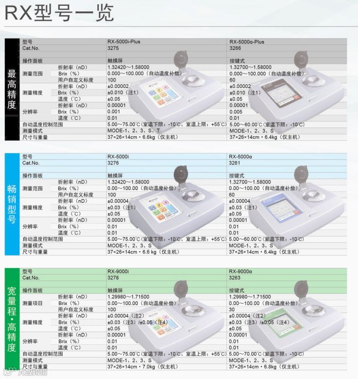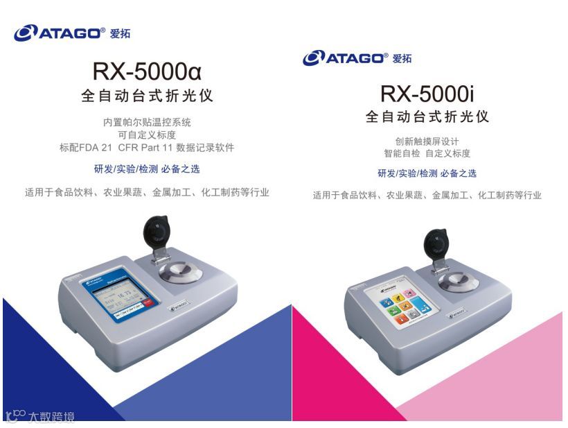 我公司代理的ATAGO(爱拓)全自动折光仪,又称为糖度仪,折光糖度仪,用于测量各类果汁,果酱、液态糖、各类糖浆的白利度(Brix),折射率(nD)与白利度(Brix)存在一定的线性关系,折光仪可以通过测量物质的折射率直接转换成白利度,直观清晰读取Brix值(糖度),具备帕尔贴温控功能,样品量少,测量快速,多种测量模式,备有按键式和触摸屏式,满足不同使用要求。