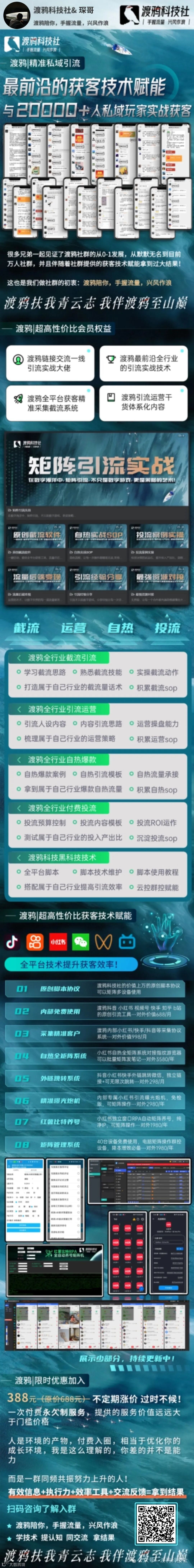 咱们操盘手里,有好多个,本来自己有 IP,有粉丝基础的兄弟,拿着渡鸦 388社群这个好产品去卖,朋友圈打造好了直接框框收人