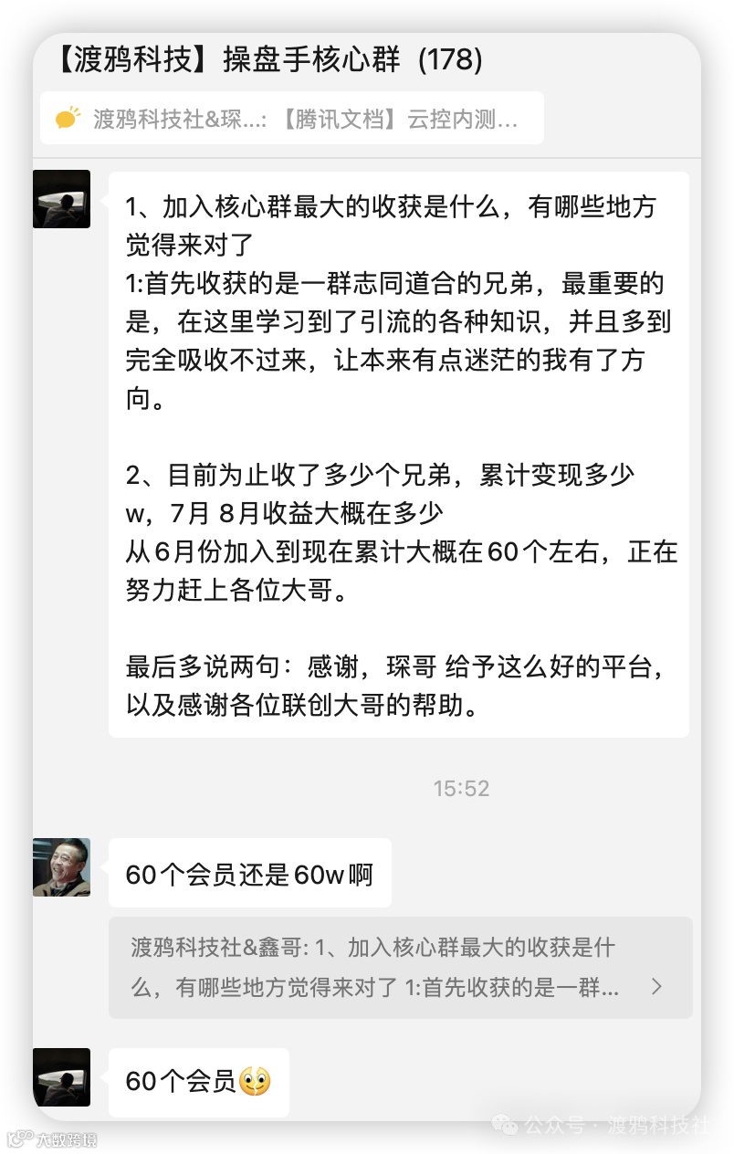 但是在那会还有一些私域社群的体量能和渡鸦抗衡,为了长远考虑,我在三月底开启的第一期核心群操盘手计划