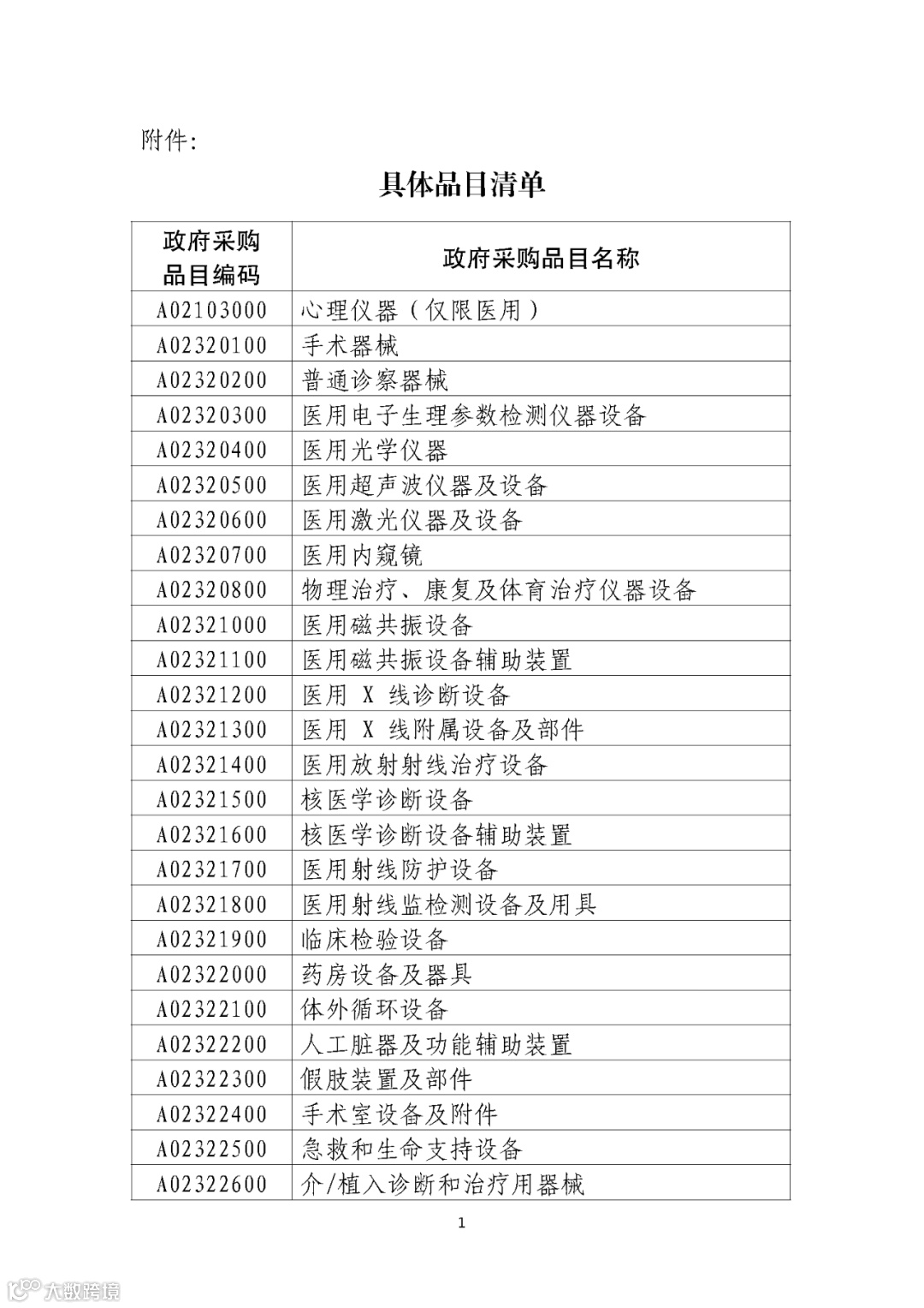 以下是具体品目清单: