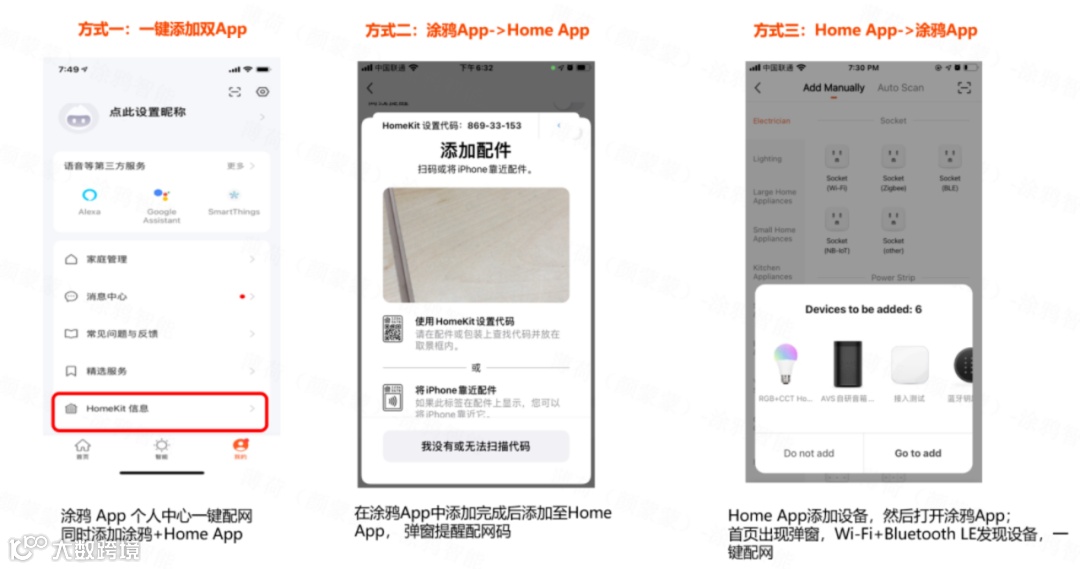 该方案可实现苹果家庭 App 和涂鸦 App 共同控制同一款智能