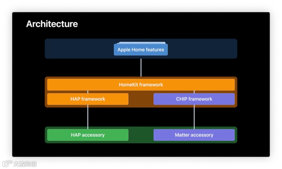 目前的 HomeKit 框架,可以大致分为 HAP(HomeKit Accessory Protocol)框架和 Matter 框架。HomeKit 是苹果生态的智能家居技术框架,而 Matter 是一个集成多家生态平台实现统一的应用层协议,无论您的设备是基于 Thread、Zigbee、Wi-Fi 还是蓝牙,都可以兼容。