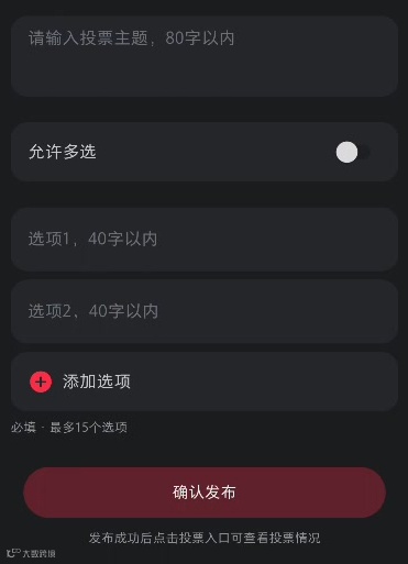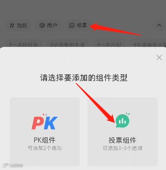 发布笔记可以同时发起投票,设置3个选项,分开设置对应的钩子