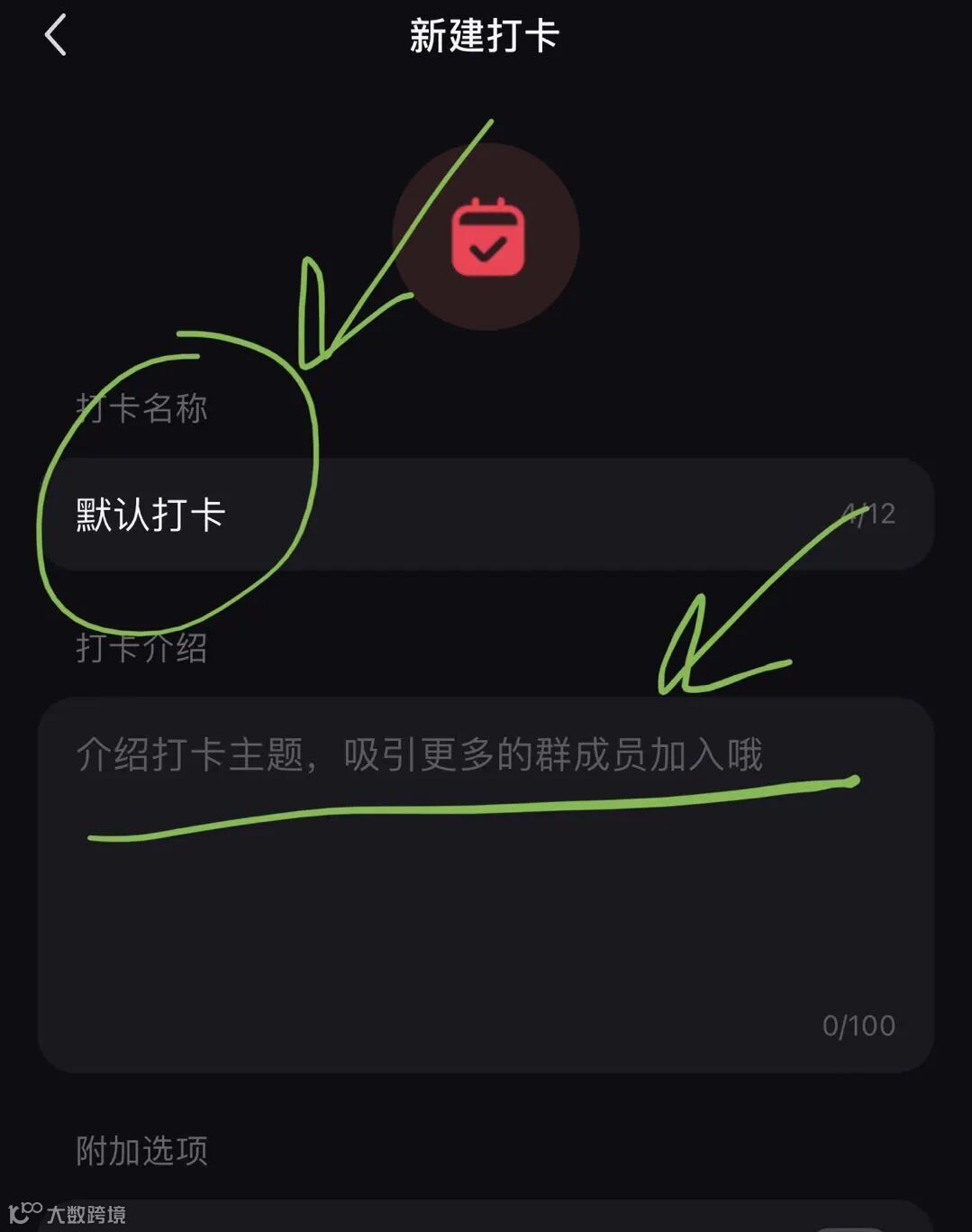 测试直接留也能过审核,有个缺点,打卡时候大家都能填写内容,且不能撤回打卡内容,容易有同行捣乱,自己试一下