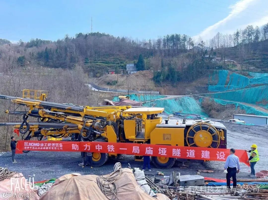 在“机械化换人,自动化减人”的施工趋势下,徐工三臂凿岩台车凭借领先的智能凿岩系统和整机稳定性,火力全开,负责爆破孔钻进、锚杆孔钻进、掌子面排险等一系列施工作业,加速推进高铁建设。