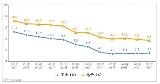1-8月份,规模以上电子信息制造业增加值同比增长9.3%,增速分别超出工业、高技术制造业5.7和0.9个百分点。8月份,规模以上电子信息制造业增加值同比增长5.5%,较7月份回落1.8个百分点。