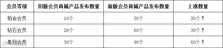 2、普通会员服务商的产品发布权限调整:产品发布数量从原本5个调整为8个。