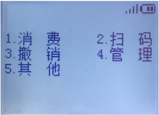 2、待机页面按“确认”键,选择2扫码➡1扫码支付可进行扫码交易;