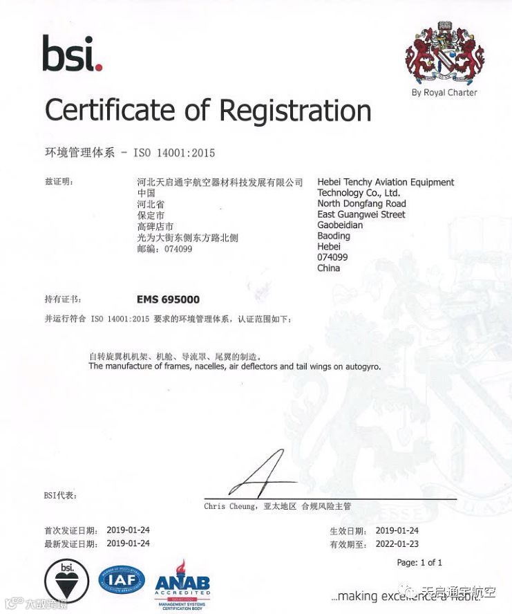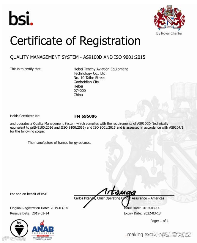 热烈祝贺河北天启通宇航空器材科技发展有限公司顺利通过管理体系认证,并获BSI颁发的国际认证证书。这标志着公司的企业管理能力、产品的质量进入国际水平,并向国际标准行列迈进。这也为进一步规范公司生产、科研、销售、有效控制风险、提高效益,形成标准化经营、规范化管理的模式做出长久的防控保障。