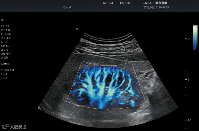 能够捕捉直径不足百微米的微血管血流信号,实现类造影效果的微循环成像。相较市售设备仅能分辨肾脏三级血管,SensiFlow可显示至四级血管血流。对于肠管、胆囊息肉、肿瘤新生血管等以往难以显像的细微结构,也能稳定呈现。