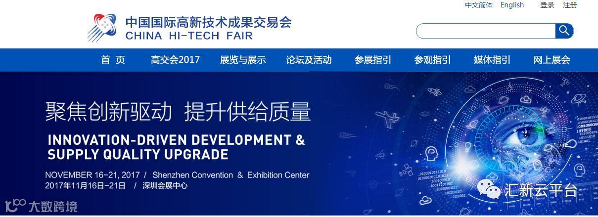 11月16日又是一年一度的高交会,为深入贯彻落实国家关于促进科技成果转化,充分展现高新技术的发展成果。汇新云平台将参加2017年11月16日~21日在深圳举行的第十九届中国国际高新技术成果交易会(简称高交会)。