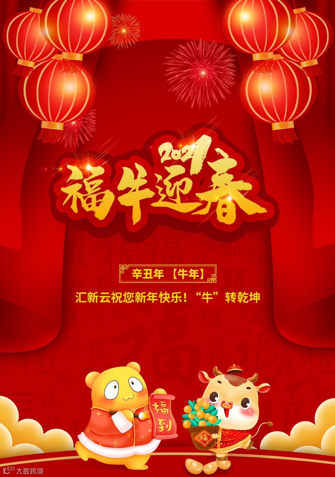 福牛迎春,汇新云祝您新年快乐!“牛”转乾坤