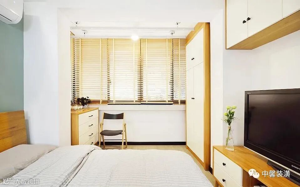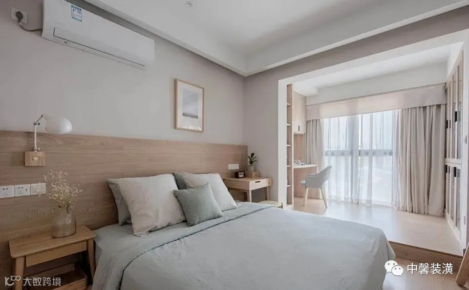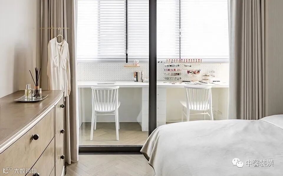 就像现在,如果经常在家办公,也没有书房的空间。那么卧室里的阳台,封闭起来可以摆上书桌台,这样就是一个非常实用舒适的办公区了。
