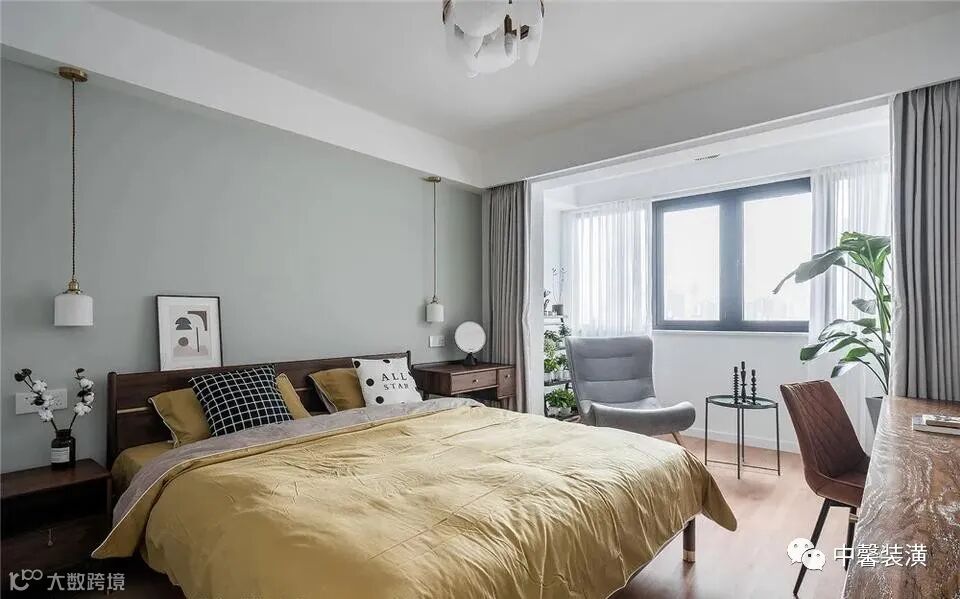 阳台如果不想封起来的话,那么卧室与阳台之间的落地推拉门还是需要保留的,这样外界与阳台相连,还可以作为晒衣物的空间,也可以作为种花种草的位置,让空间显得清新舒适。