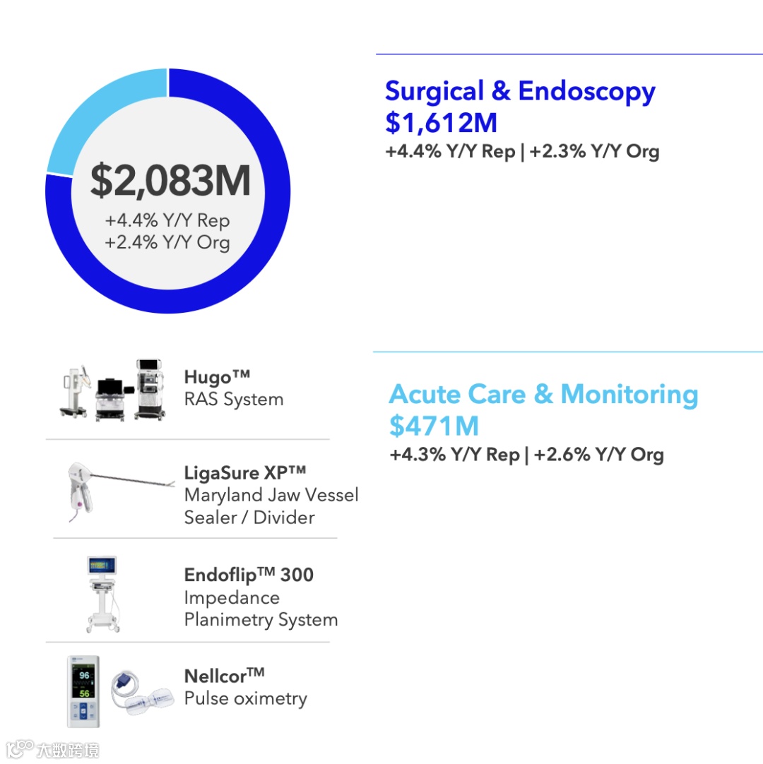 Hugo™手术机器人系统:尽管尚未在美国获批,但在亚太及新兴市场实现双位数增长。新获CE认证的LigaSure™ RAS密闭技术支持其进一步拓展至妇科、泌尿外科与普通外科术式。