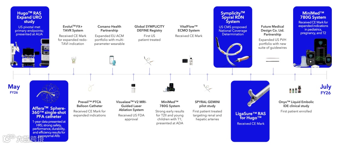 进入Q2和下半年,Hugo机器人在美国泌尿适应症、Simplera Sync CGM与Tibial神经刺激器均预计落地,为全年加速增长奠定基础。