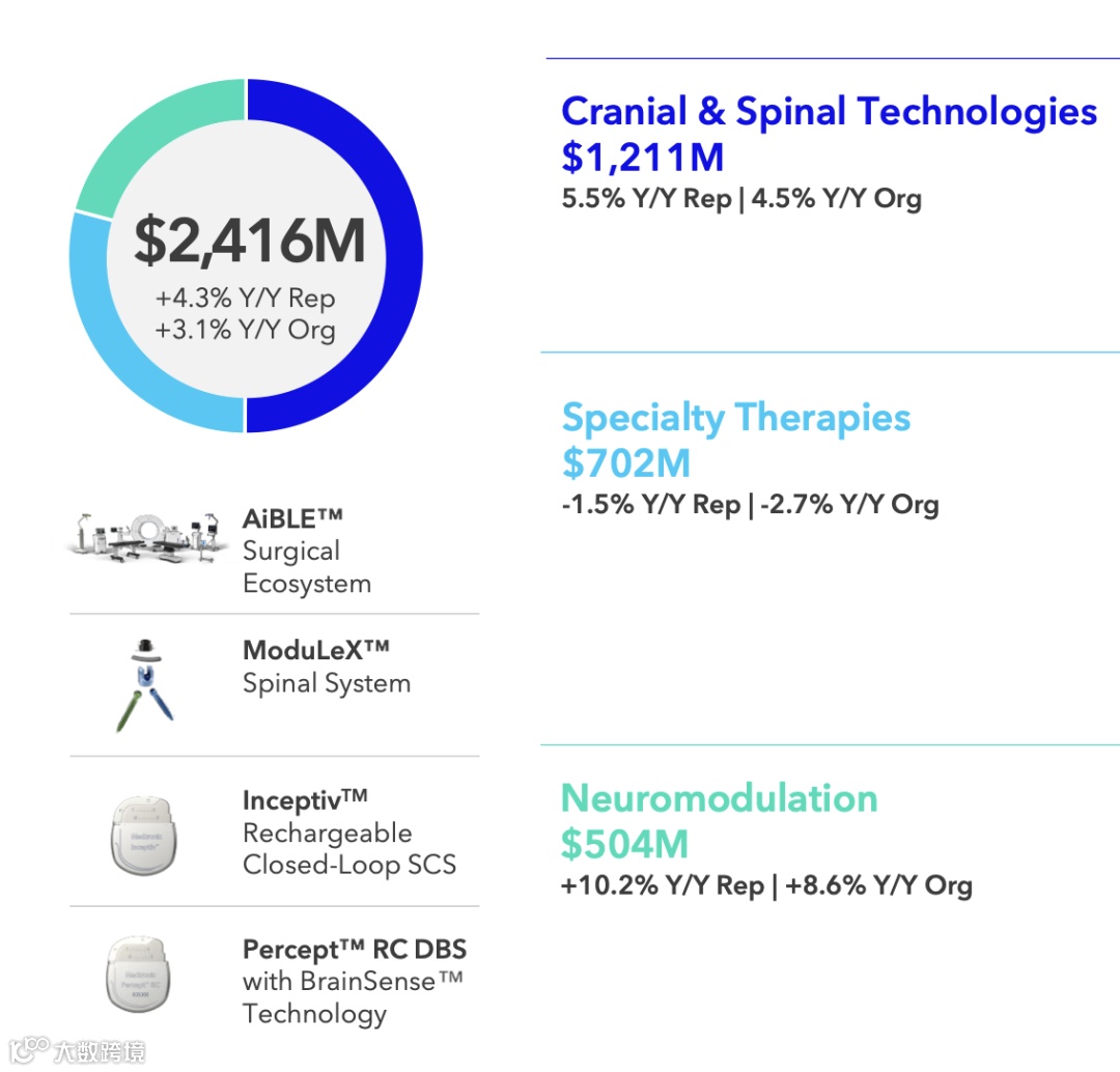 神经科学业务本季度收入24.16亿美元,有机增长3.1%。其中,神经调控与颅脑/脊柱技术构成核心增长驱动,部分专业治疗板块仍受政策与产品影响,但整体展现出“系统能力+场景集成”优势。