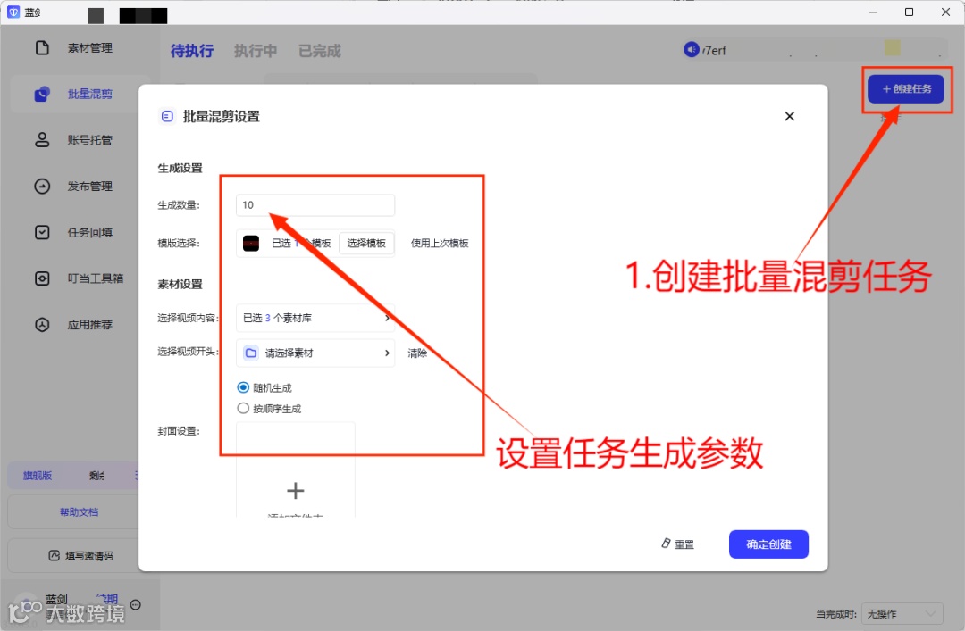 ✵ 设置生成参数,启动“批量生产”,生成50条视频。
