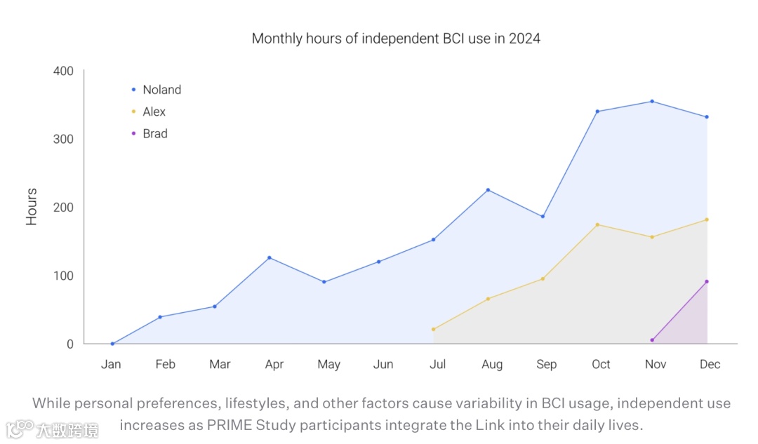 截至2025年初,三位受试者累计使用超过4900小时,总植入天数超过670天,主要用于光标控制、网页浏览、游戏交互等任务,患者反馈积极。