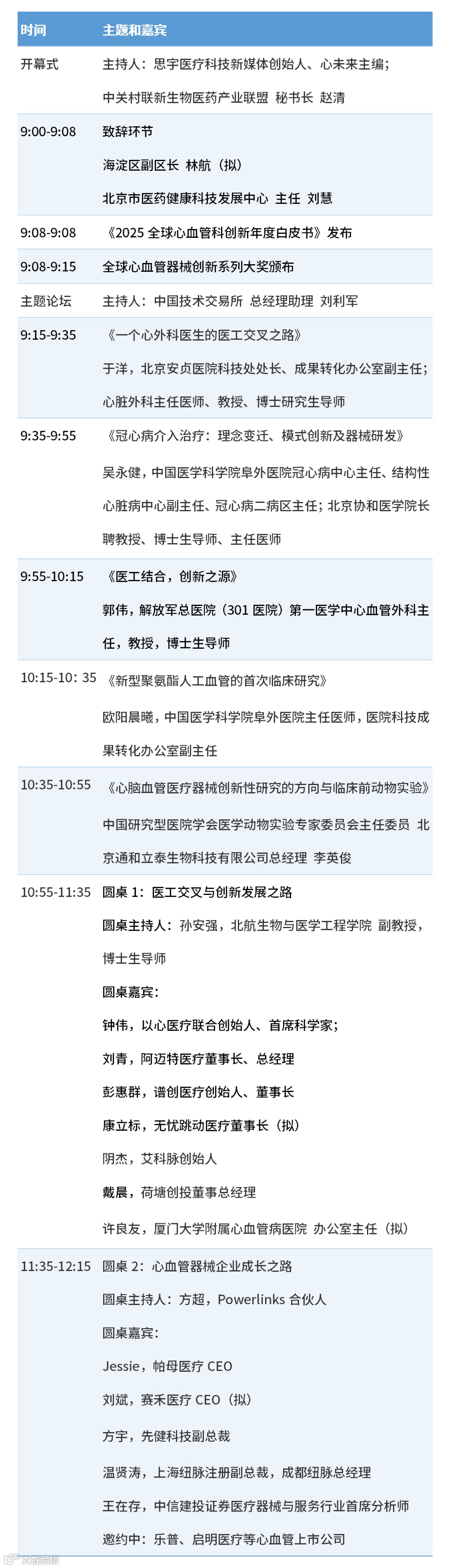 为促进心血管医工合作、技术创新,思宇MedTech、心未来将于2025年5月15日(星期四),在北京中关村展示中心举办首届全球心血管大会(GCC2025)暨创新颁奖典礼。请尽快报名,锁定参会席位!(仅参会是免费的。)(前期填表的已拉群;没有入群的,请通过工作人员好友申请,方便后续发地址、会刊等。)