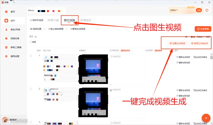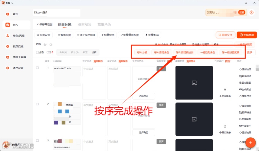 完成分镜、角色推理、描述词以及配音设置,点击一键生成图片