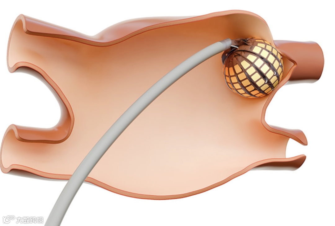 导管直径约 30 毫米,配备 122 个独立电极,可同时完成:高分辨率心电图记录