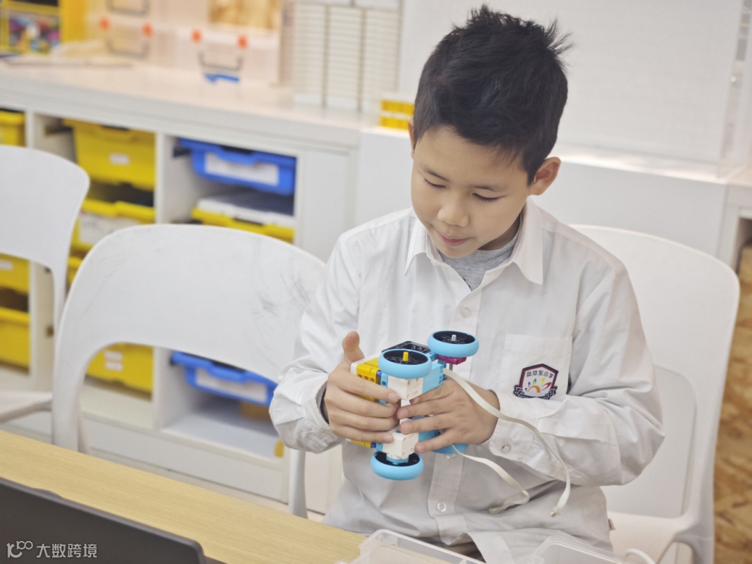 AI机器人课堂上,老师们将生活中常见的人工智能项目,如扫雷机器人、招手即停、旋转木马等和课堂项目教学相融合,让同学们在新奇中,对人工智能的应用又有了新的认知和理解。在老师们的带领下,同学们踊跃发言,团队协作,成功完成了搭建任务,并用程序控制作品运行。