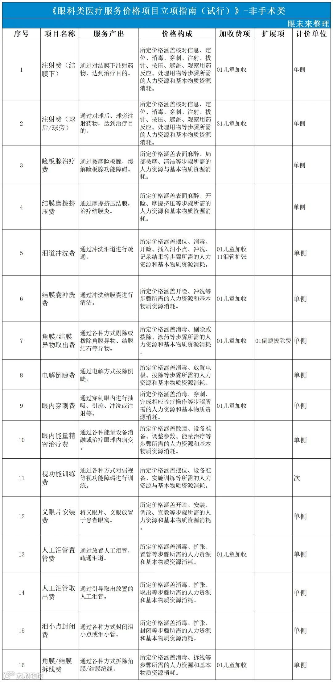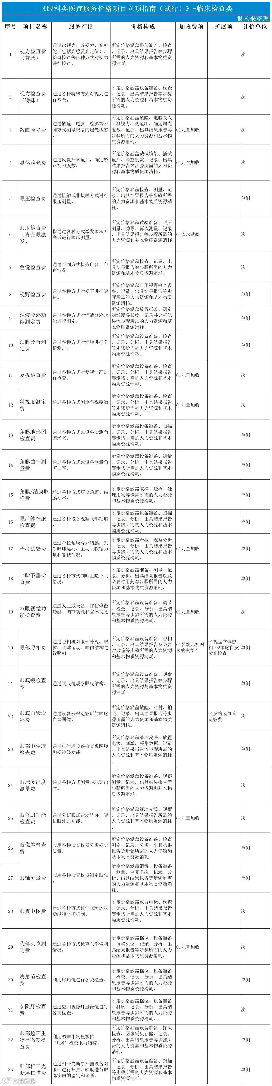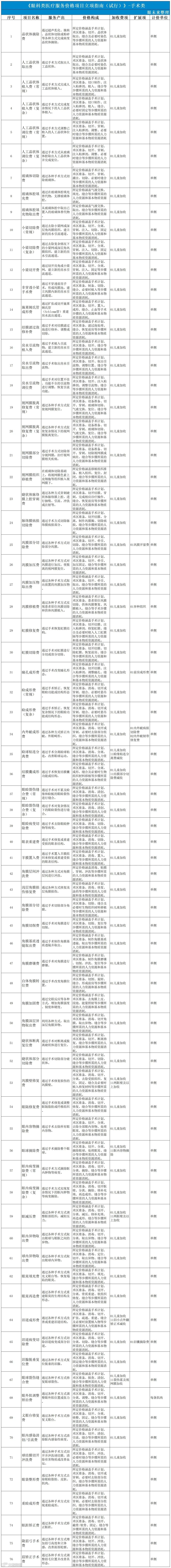 针对眼科医疗服务中美容类项目的特殊性,立项指南在计价说明中明确眼袋整形术、重睑术(双眼皮手术)等属于美容整形常用项目,供各地在制定价格管理方式时参考。为积极支持创新技术转化,立项指南将目前群众熟知的“飞秒激光近视矫正手术”单独立项。