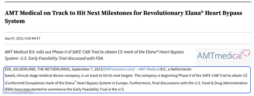 2025年4月17日,AMT Medical宣布在B轮融资中筹集了2500万美元(合约1.8亿人民币),以支持其Elana心脏搭桥系统后续研发、监管申请等工作。Elana系统旨在取代传统的开胸搭桥手术,有望实现手术机器人兼容,开展机器人辅助微创手术。