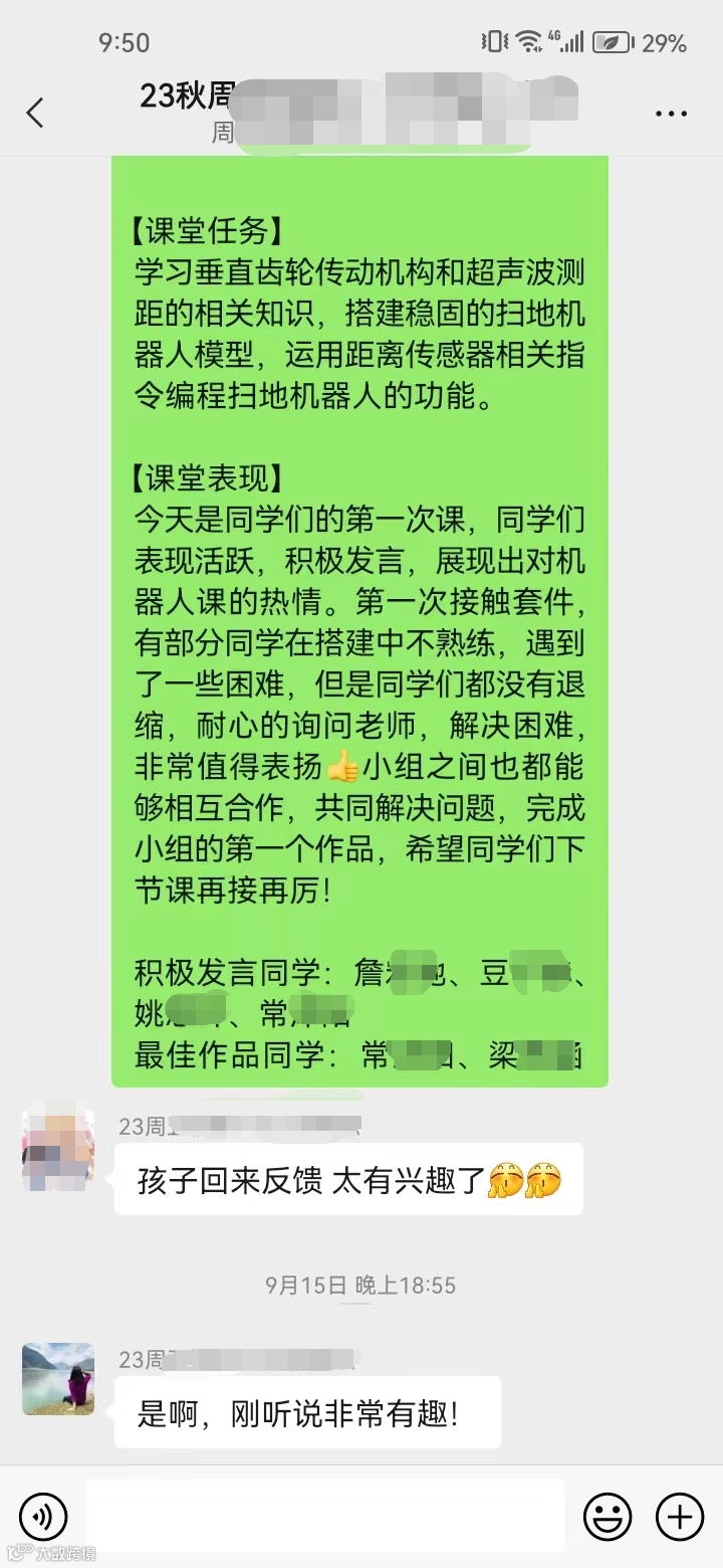 教育从来都是双向奔赴,为了让家长更好了解我们的课堂,见证孩子的点滴成长。我们在每次课后,都会及时和家长沟通反馈本节课的课堂内容、学习目标和重难点,孩子的课堂表现学习和成长,保证及时回复家长的疑问。在反馈的同时,我们也不断总结和反思,研精致思,力求完美,一切的努力都是为了孩子更好的提升。