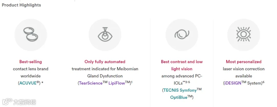 强生眼科医疗器械主要包含在强生全视旗下,其业务结构涵盖两大核心部分: