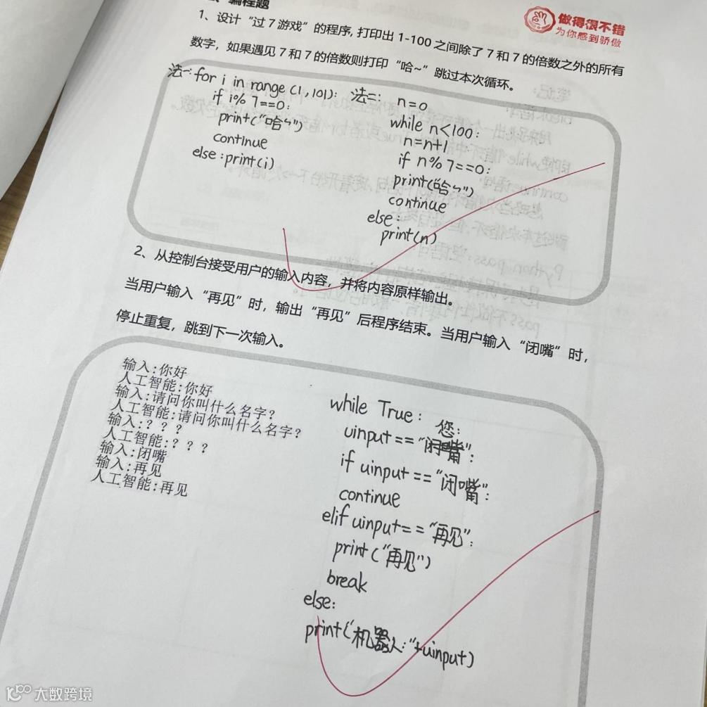 同学们通过学习break、continue在控制语句中的区别以及break、continue的使用,成功设计“过7游戏”的程序,利用控制循环实现与“人工智能”的对话。