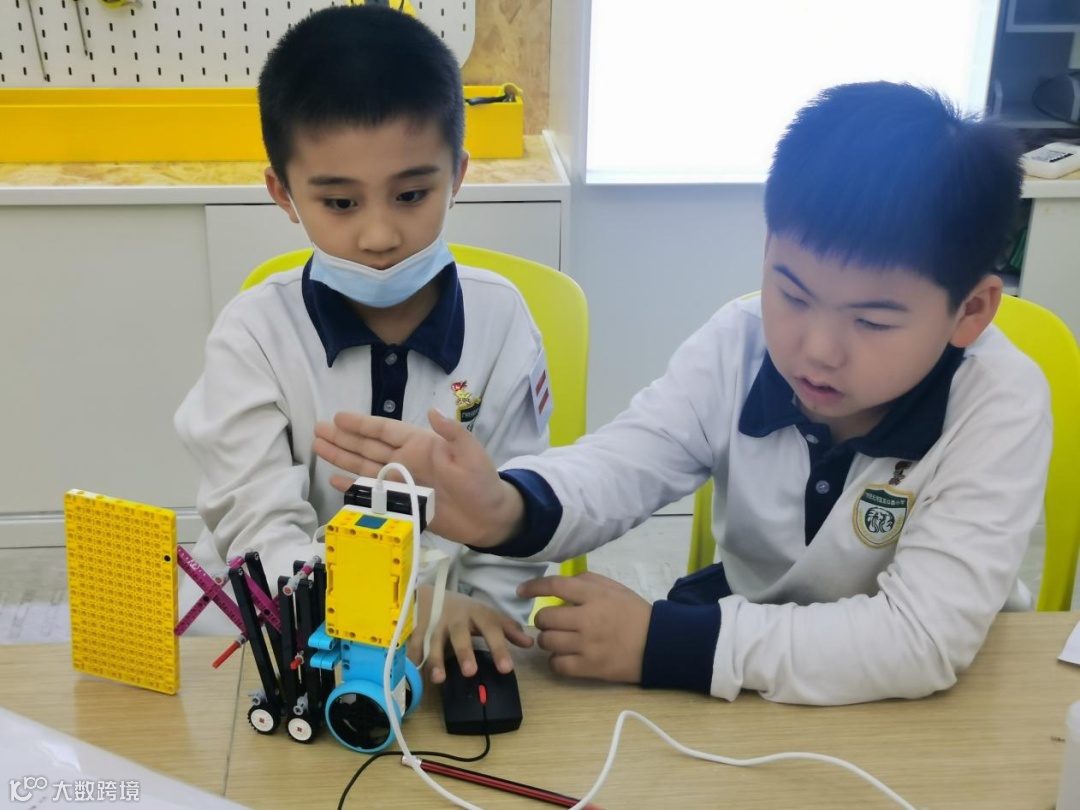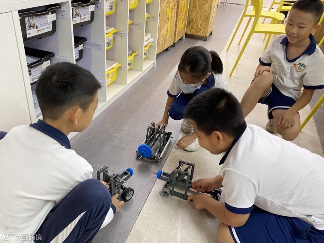 同学们通过学习定滑轮、动滑轮和滑轮组以及起重机模型的机械机构,运用滑轮结构完成“起重机”的搭建,并使用相应指令进行编程,实现“起重机”的运作。