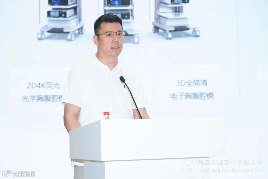 赵总在演讲中重点介绍了赛诺微的微创外科集成手术系统。该系统集成了3D、4K荧光相机、超声刀、高频电刀等多种设备,实现了智能互联互通。赵总解释道:“医生可以通过手柄调整参数,简化手术流程,提高手术效率。”这种智能化的设计不仅提升了手术的安全性和效率,也为手术室的管理带来了极大的便利。